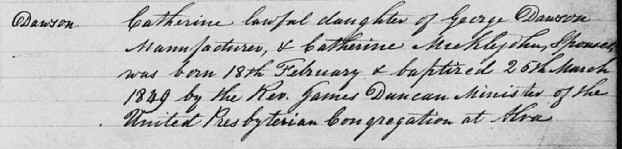 General Notes: Catherine was the third daughter of George Dawson and Catherine Micklejon.