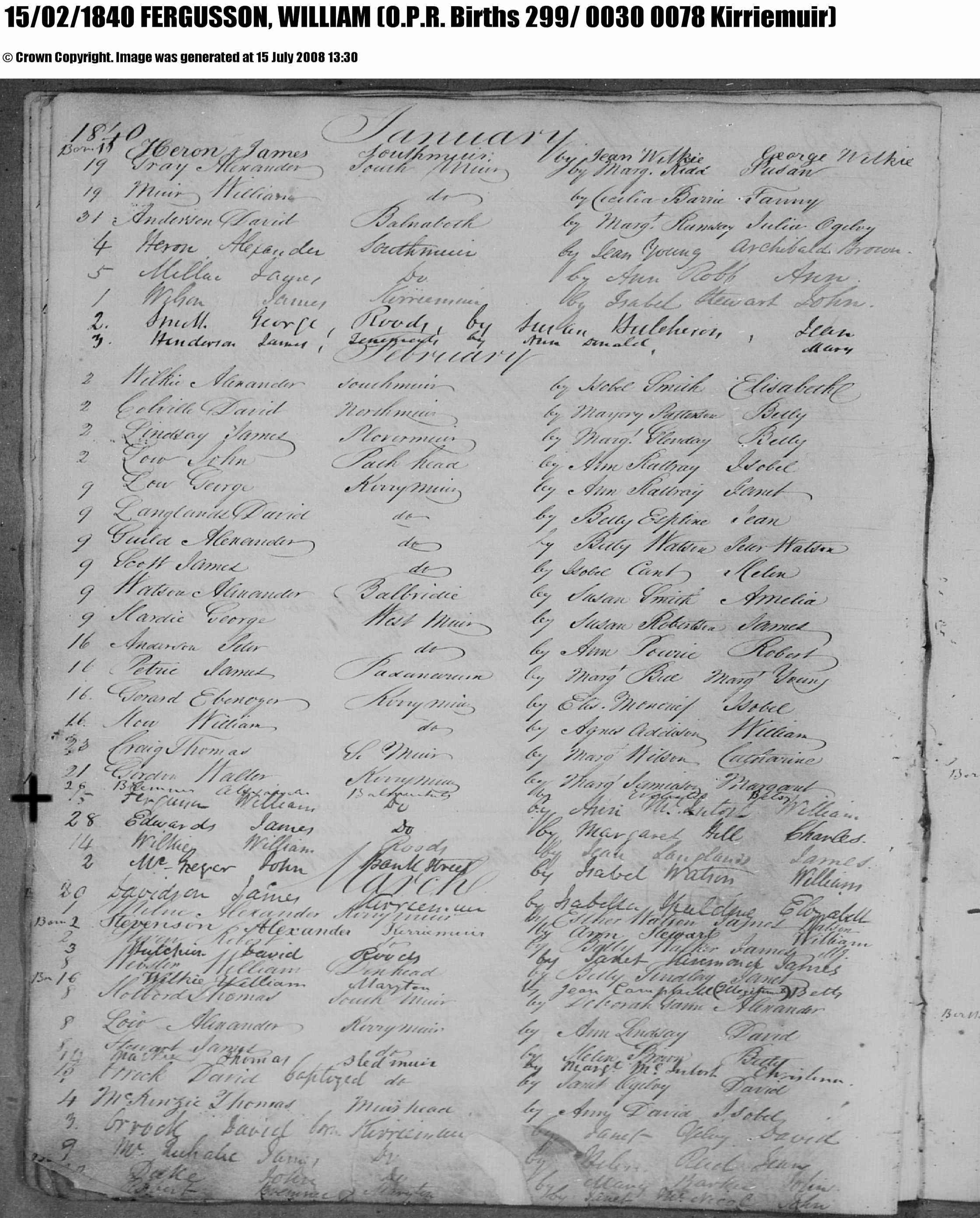 4. William FERGUSON was born on 25 Feb 1840 in Kirriemuir, Forfarshire Scotland and died young.